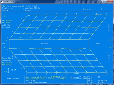 - Flank topographie, Profile- or lead line, pitch and runout as well as tooth thickness.