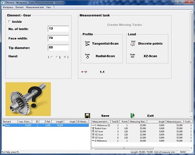 Parameters like number of teeth and face width have to be entered. Afterwards a tooth flank is scanned and based upon this measurement all parameters necessary are calculated.